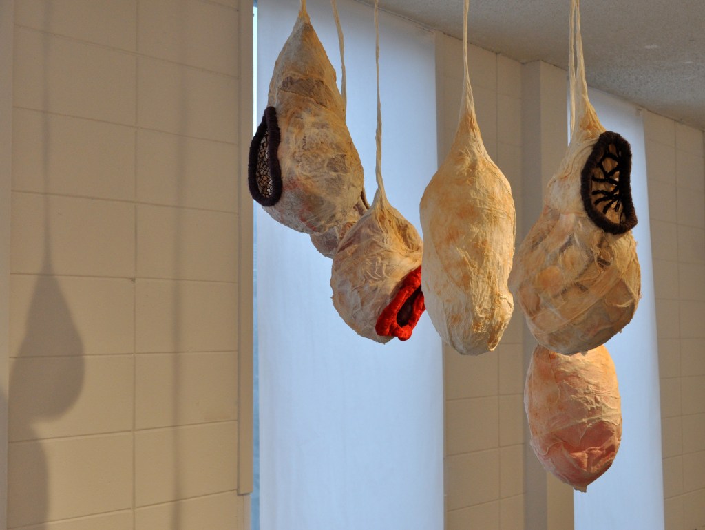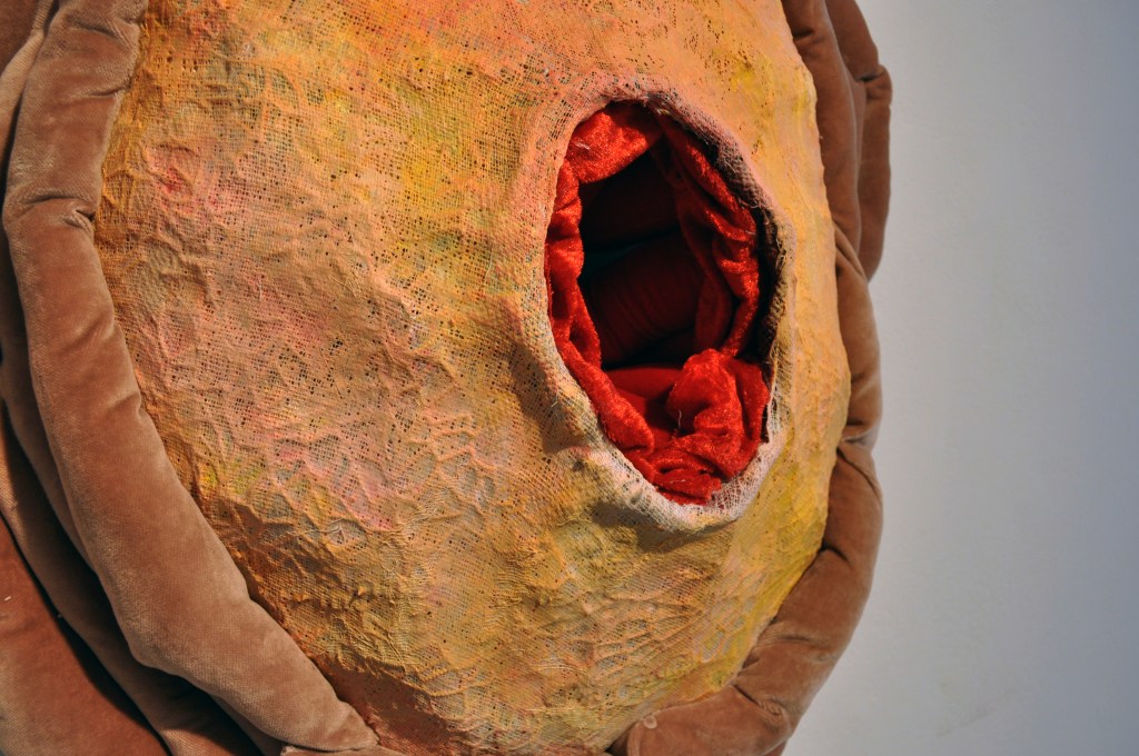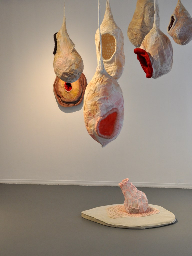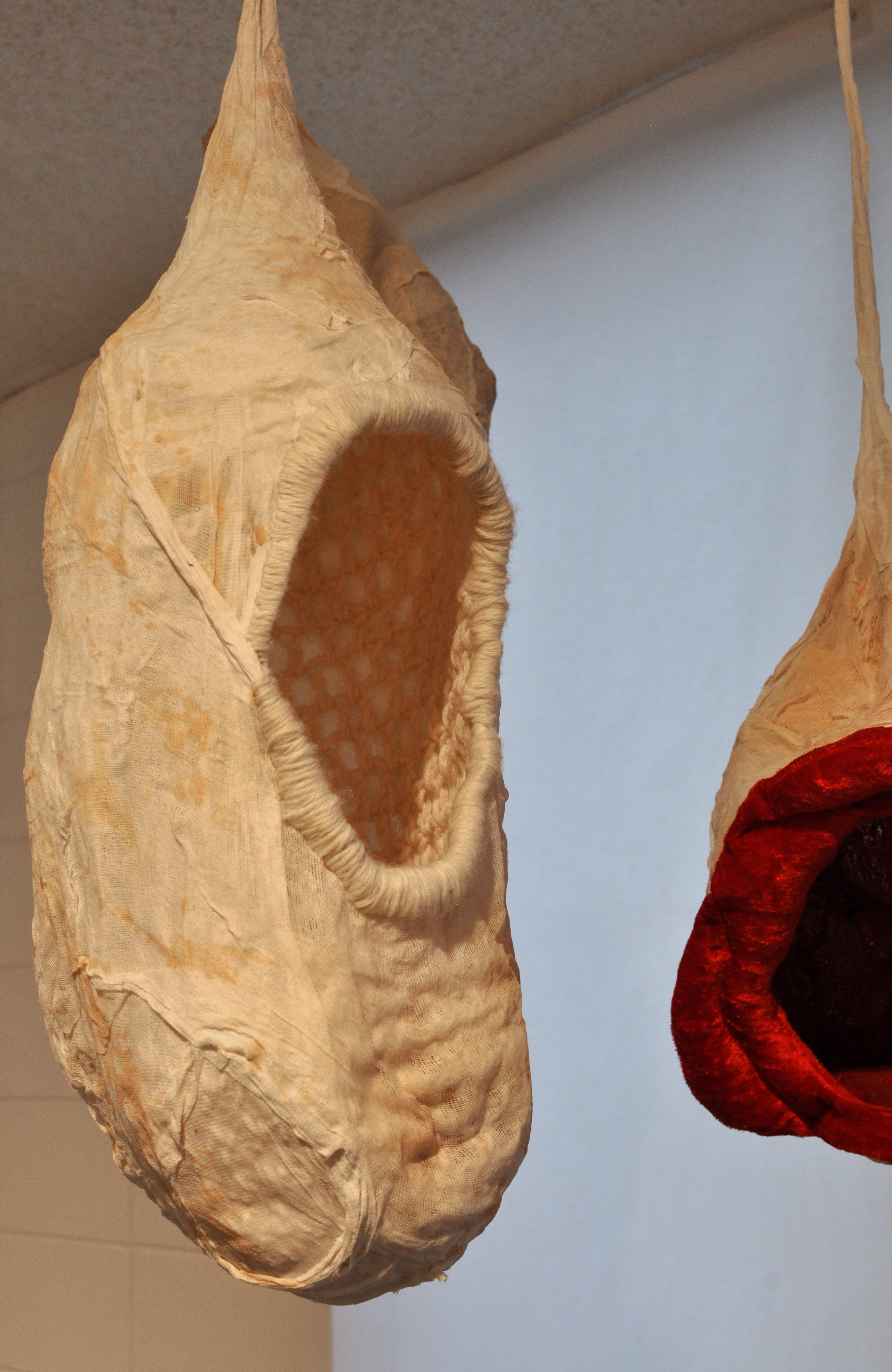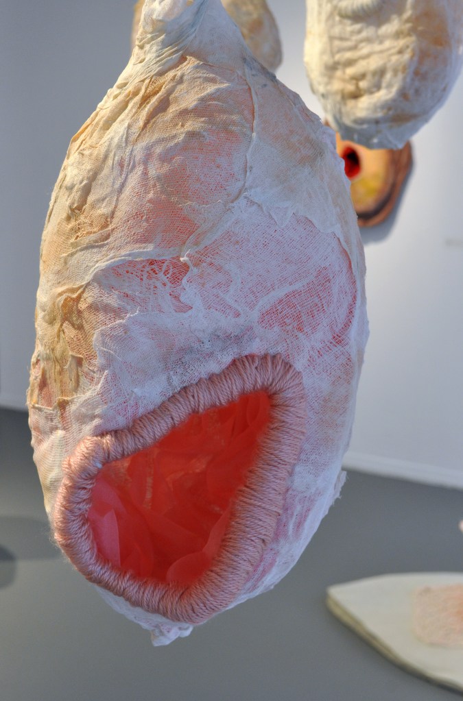 These openings are our most tender, most vulnerable places. I like to think about them, and I wonder about all the secret dead ends and voids that we all contain. So I have been making vessels that contain hidden spaces and air. I like to make them translucent, because although you cannot see inside a person, we have just as many holes, and are just as delicate. All of them have mouths, that I give focus to and make the nerve endings stitch by stitch. I am working through trying to capture the curious lightness I feel as I consider all of the air and steam and open space inside me, and every other person that has a body.